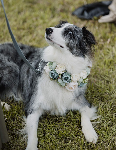 We can match your leash to your colour theme so everything feels cohesive in photos. And if you’d like something truly one-of-a-kind, our sister business Bowie & Co. can handcraft custom collars and leashes—engraved, painted, and tailored with your pet’s name, wedding date, or special details. From classic neutrals to bold statements, we’ll make sure your pet’s accessories look as good as they do.